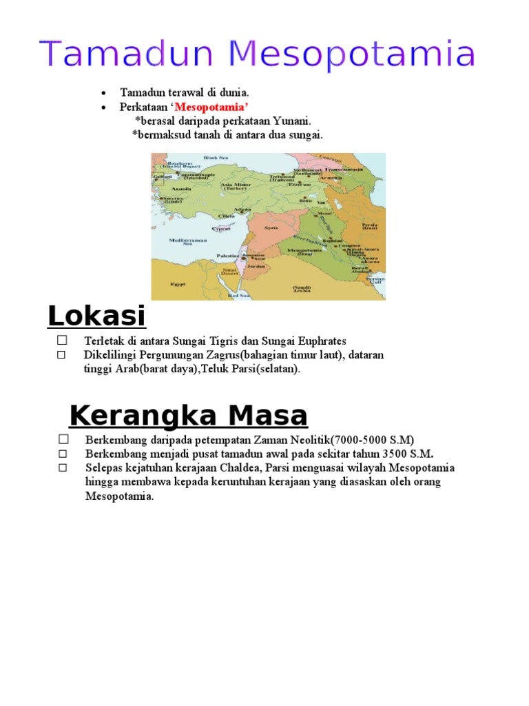 Orang sumeria dipercayai berasal dari dataran tinggi asia. Mesopotamia merupakan tamadun terawal yang lahir di dunia lahir di wilayah yang kini terletak di iraq, timur syria, tenggara turki dan barat daya iran. Tamadun ini terletak di teluk parsi. Jadual 4 berikut menunjukkan kejayaan jepun dalam bidang ketenteraanapakah kesan kejayaan tersebut terhadap asia tenggara?(f5 m/s 17) setiap negara kota dalam tamadun mesopotamia mempunyai pelbagai bentuk pintu gerbang. Masyarakat negara kota terbahagi kepada 2 golongan.