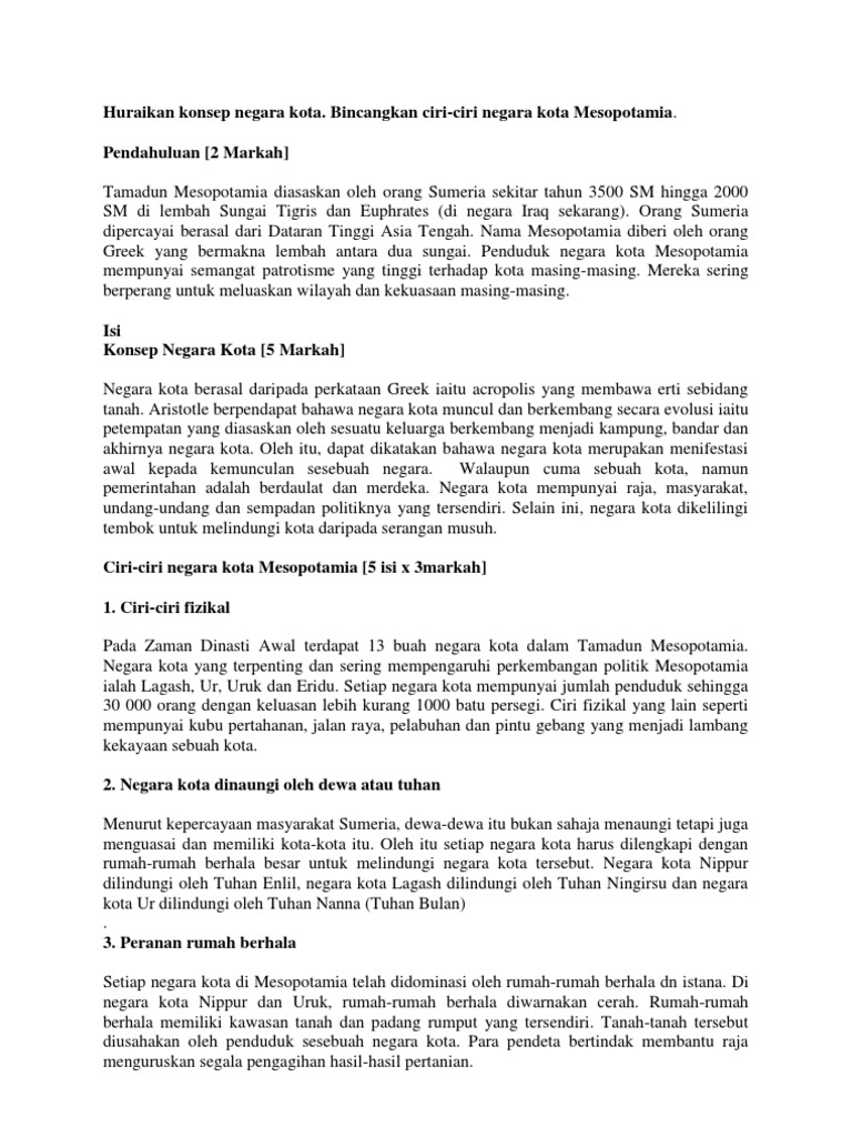 Negara Kota Tamadun Mesopotamia - Peperangan sering berlaku di antara negara kota menyebabkan sentiasa berlakunya penukaran pemerintah, kemusnahan negara kota dan keruntuhan.. Antara berikut yang manakah menjadi pusat sesebuah kota dalam tamadun mesopotamia? Tempat ibadat tamadun mesopotamia 5. Negara kota tamadun mesopotamia yang masyhur Tanah di antara dua sungai (sungai tigris dan sungai euphrates). Tamadun mesopotamia dapat dibahagikan kepada tujuh zaman pemerintahaan yang penting: