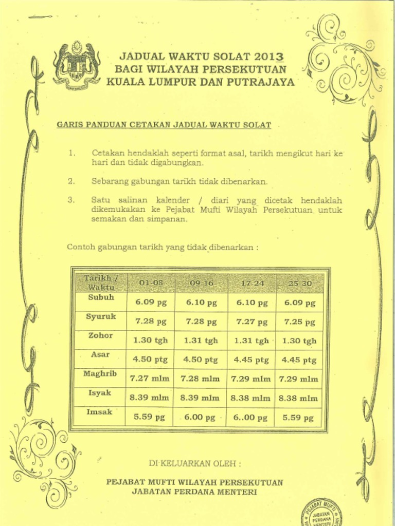 Jadual Waktu Solat Wilayah Persekutuan Kuala Lumpur 2017 from demo.fdokumen.site Jadual waktu solat wilayah persekutuan kuala lumpur dan putrajaya bagi tahun 2020. Waktu solat di kuala lumpur. Johor kedah kelantan kuala lumpur labuan melaka negeri sembilan pahang perak perlis pulau pinang putrajaya sabah sarawak selangor terengganu. Cetakan waktu solat dibenarkan sama ada dalam bentuk taqwim miladi atai taqwim hijri. Jadwal sholat atau waktu sholat versi baru dan terupdate untuk wilayah jakarta dan seluruh indonesia. Almanak falak syarie jakim * dikeluarkan oleh: Prayer times today in kuala lumpur will start at 05:49 (imsak) and finish at 20:32 (isha). Kuala lumpur ماليزيا يقع في 6978.94 كلم شمال غرب إلى مكة المكرمة.