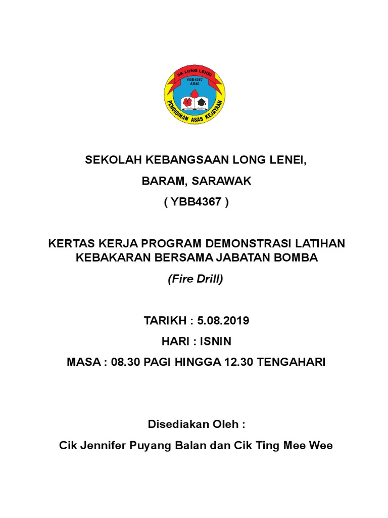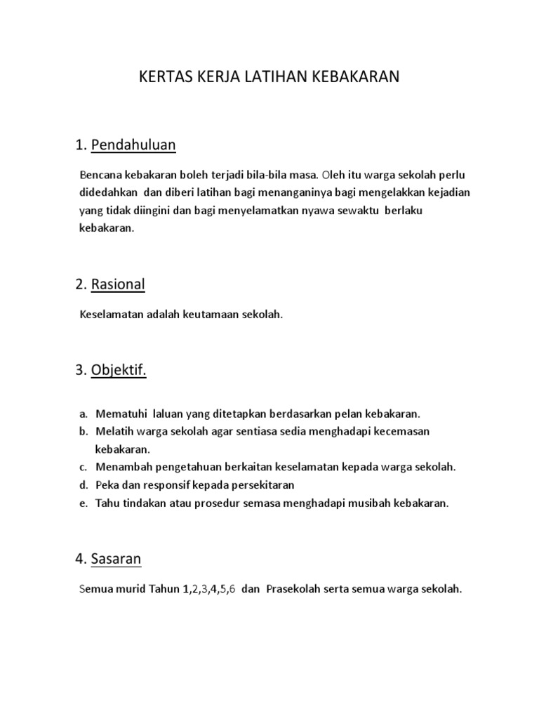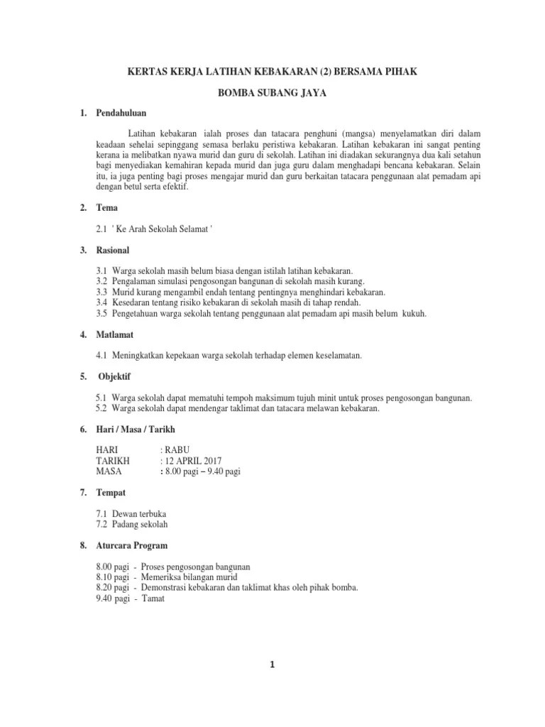 Kertas kerja program kawad pengungsian kebakaran demonstrasi memadam kebakaran bersama jabatan bomba tarikh : Peraturan latihan kecemasan dan kebakaran jadual pelaksanaan demonstrasi latihan kebakaran kewangan jawatankuasaunit keselamatansekolah jawatankuasa pengelolaan l penutup kertas kerja latihan kebakaran fire drill Kertas kerja surat latihan kebakaran bersama bomba. Use the download button below or simple online reader. For more information and source, see on this link :